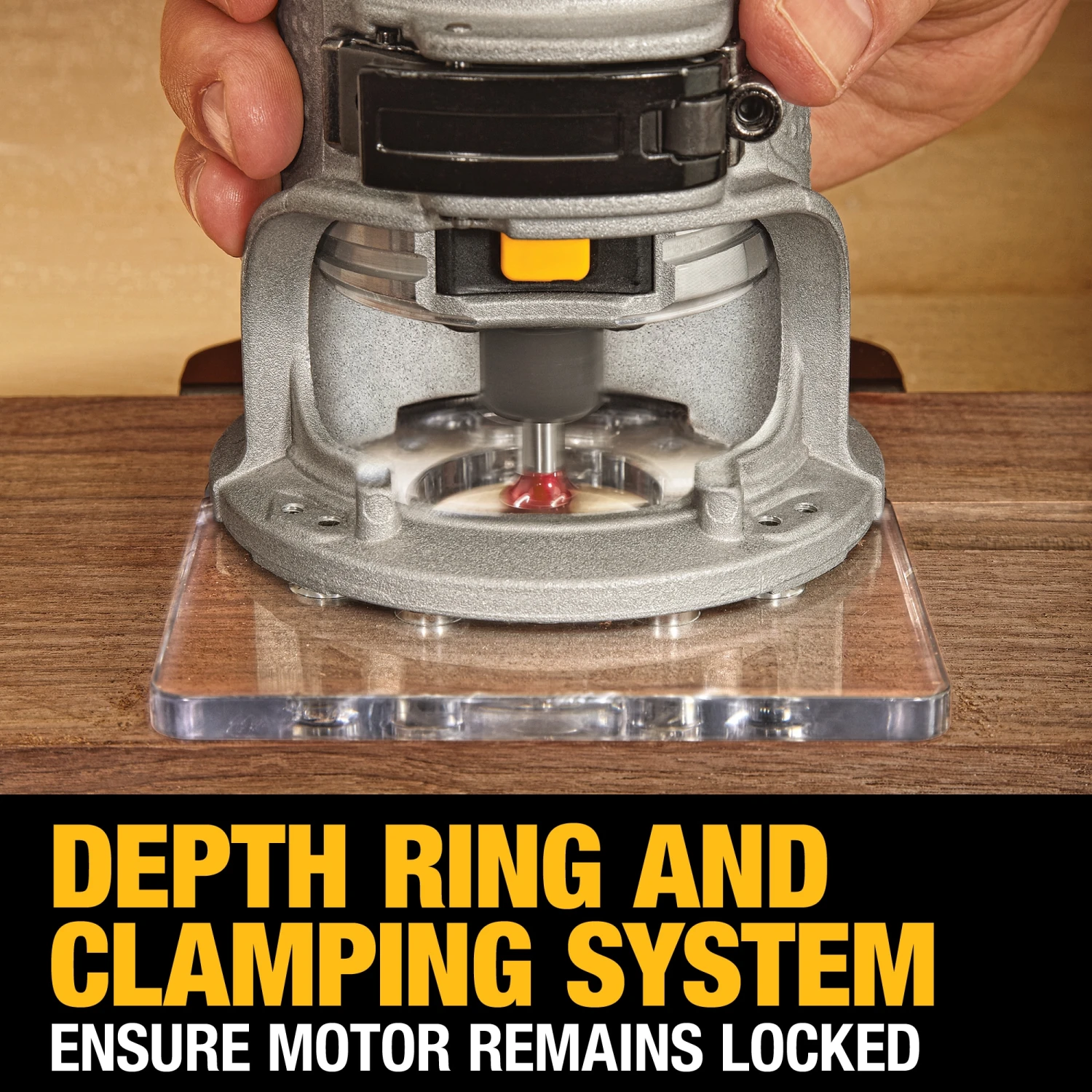 Durable DEWALT® 1.25 HP fixed base corded router is ideal for carpentry projects like making grooves for joints and decorative mouldings