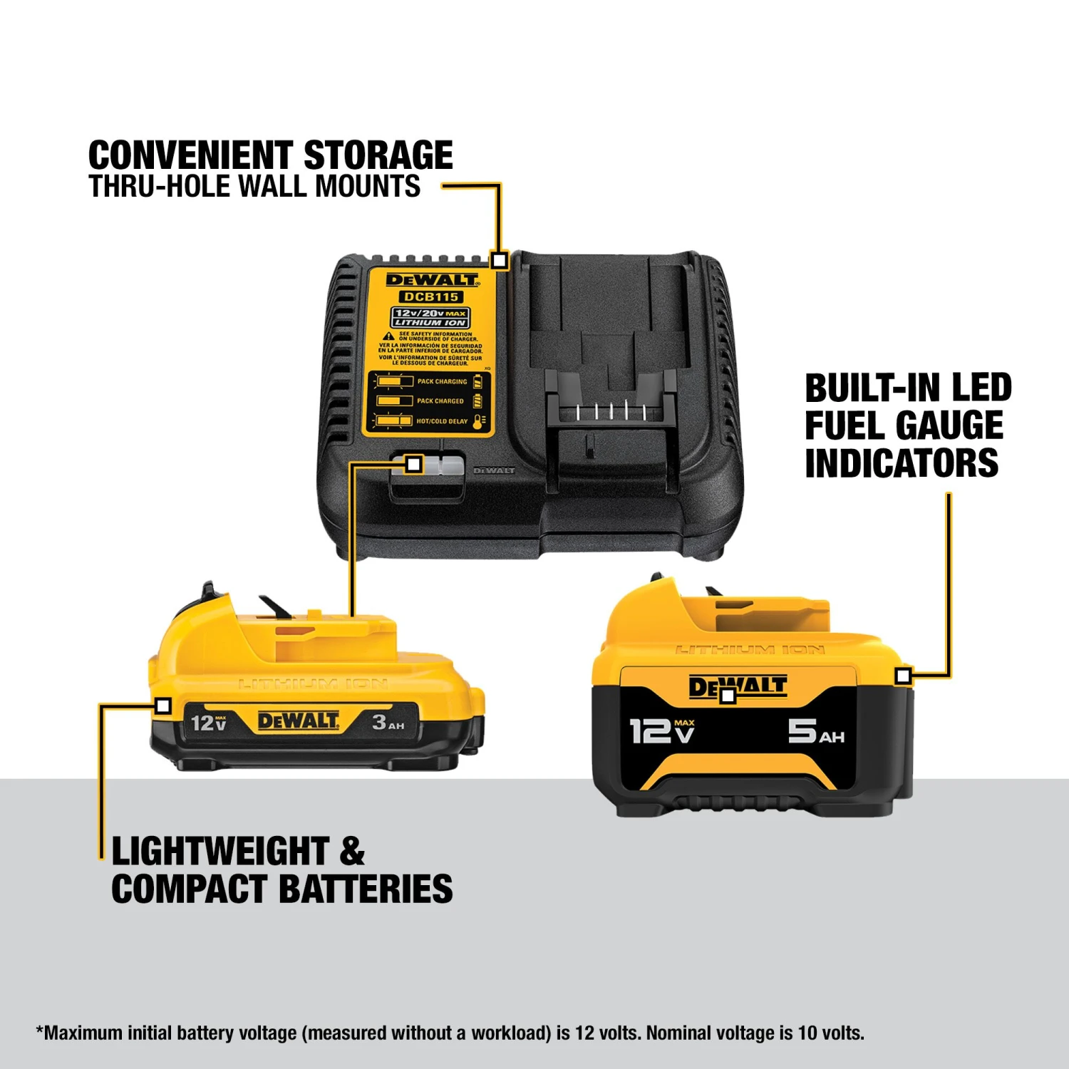 DEWALT 12 -Volt 2 -Pack Lithium-ion ( 3 Ah 5 Ah Battery And Charger )
