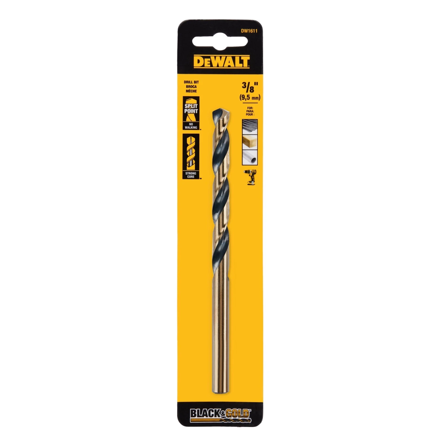DEWALT 3/8-in X 6-in Black And Gold Coated HSS Aircraft Length Twist Drill Bit