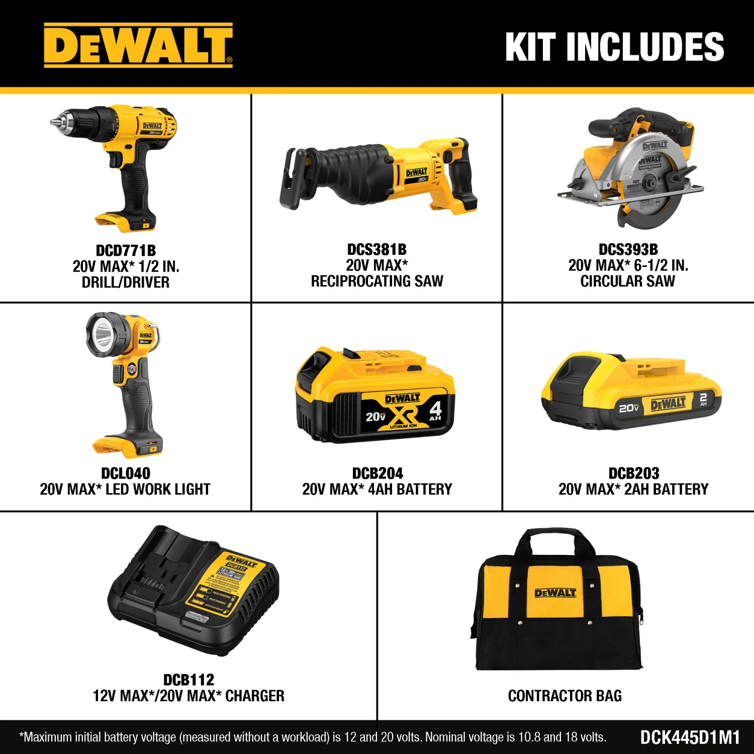 DEWALT 4-Tool 20-Volt Max Power Tool Combo Kit With Soft Case (2-Batteries And Charger Included)