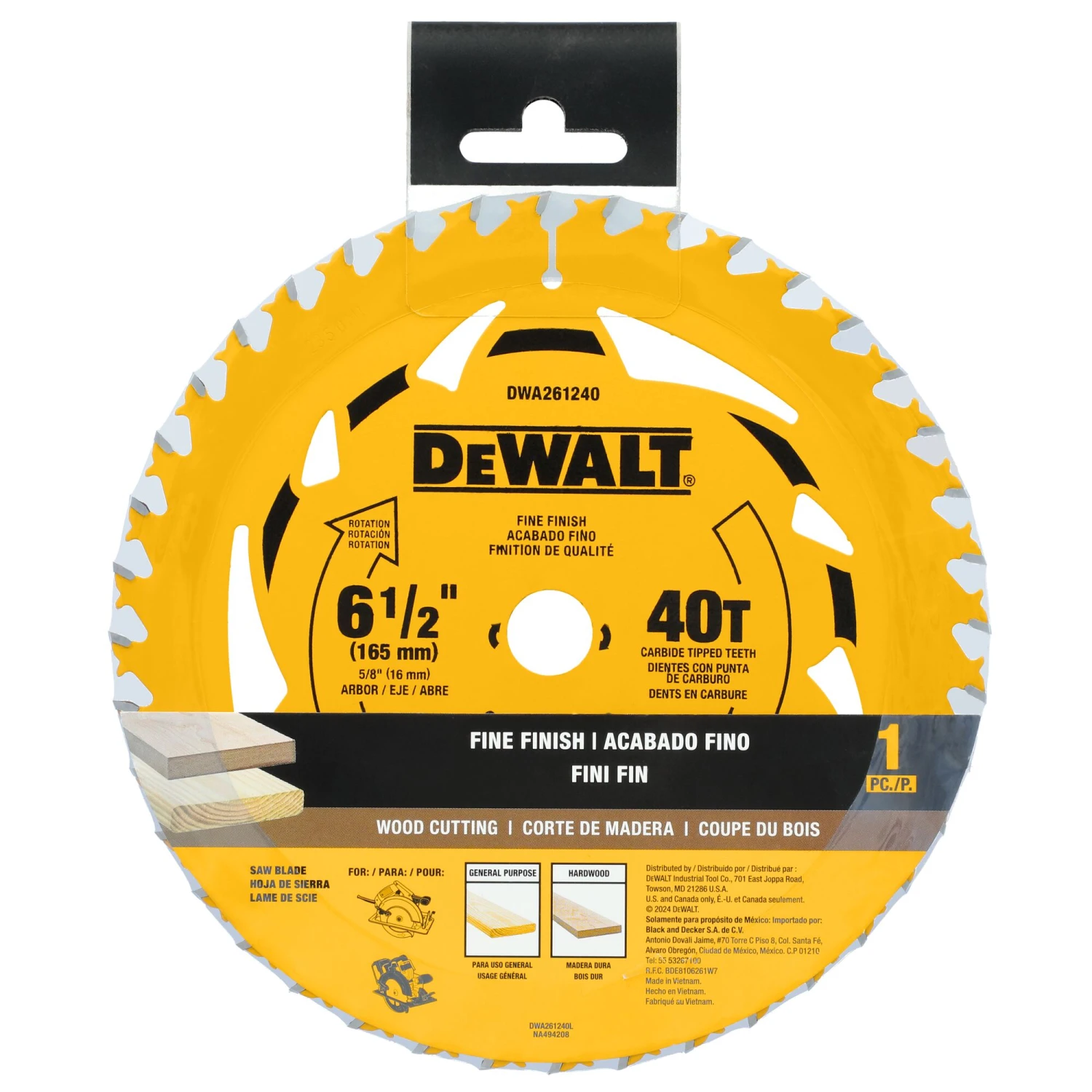DEWALT 6-1/2-in 40 -Tooth Fine Finish Tungsten Carbide-tipped Steel Circular Saw Blade Individual