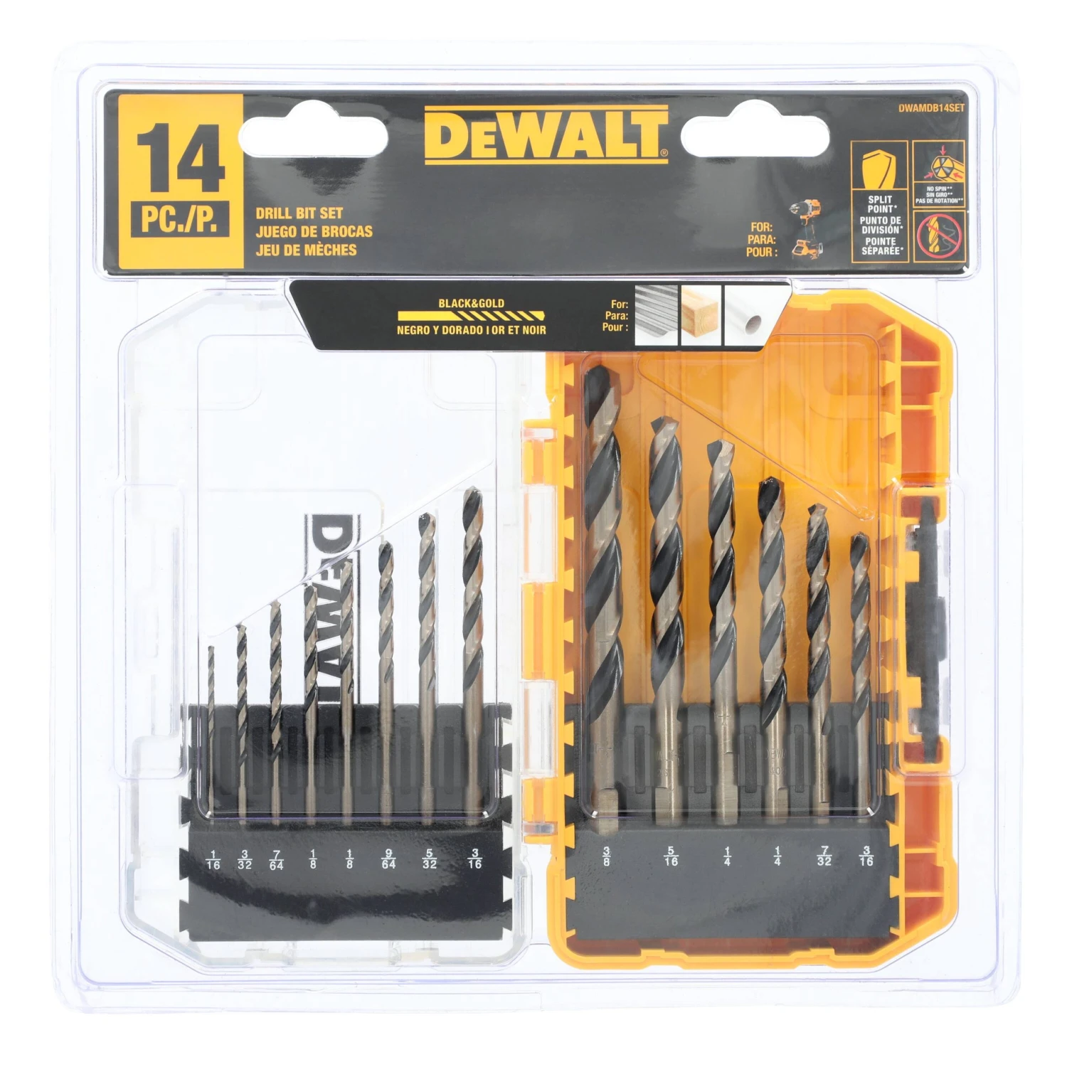 DEWALT BLACK + GOLD 14 -Piece X Black And Gold Coated HSS Jobber Length Twist Drill Bit Set