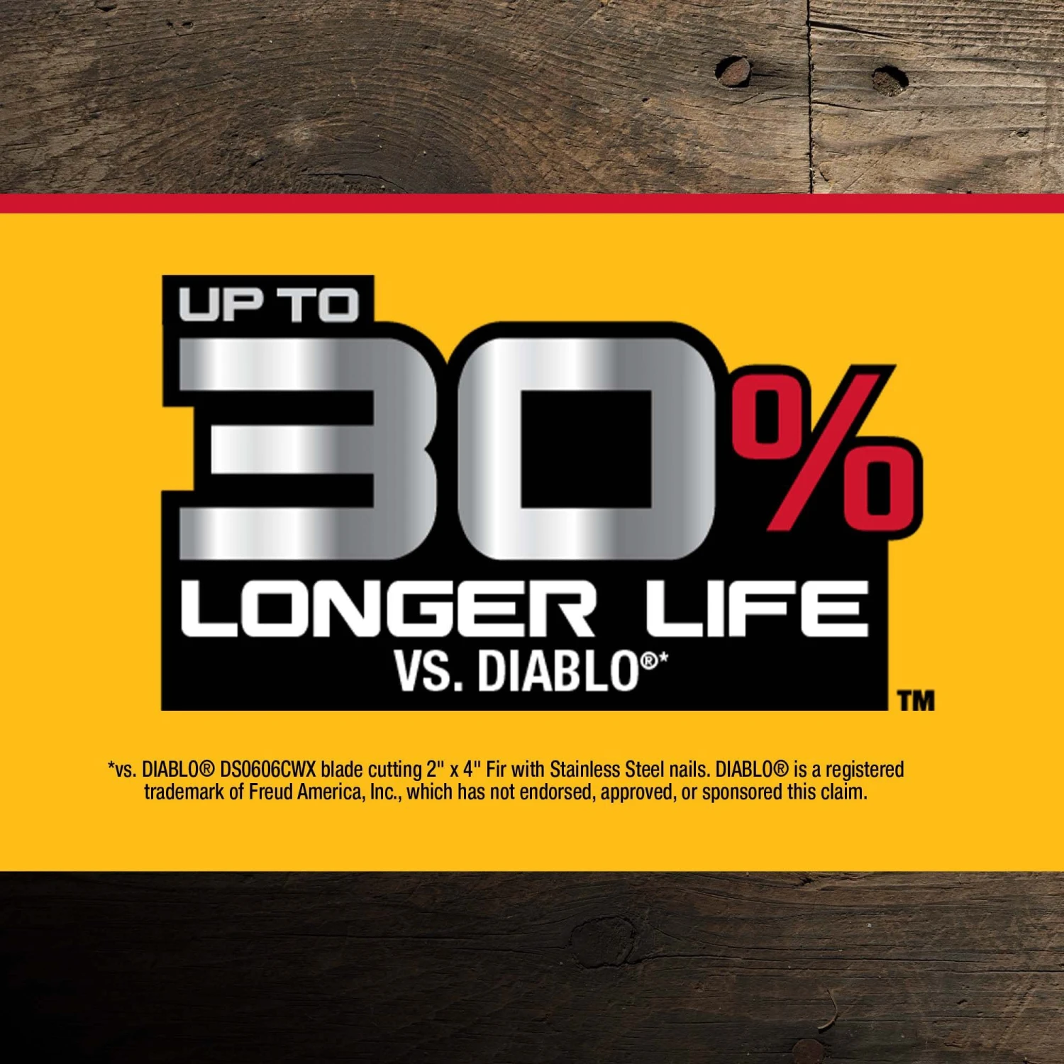 Versus DIABLO® DS0606CWX blade cutting 2-in x 4-in Fir wood with Stainless Steel Nails, DIABLO® is a registered trademark of Freud America, Inc, which has not endorsed, approved, or sponsored this comparison