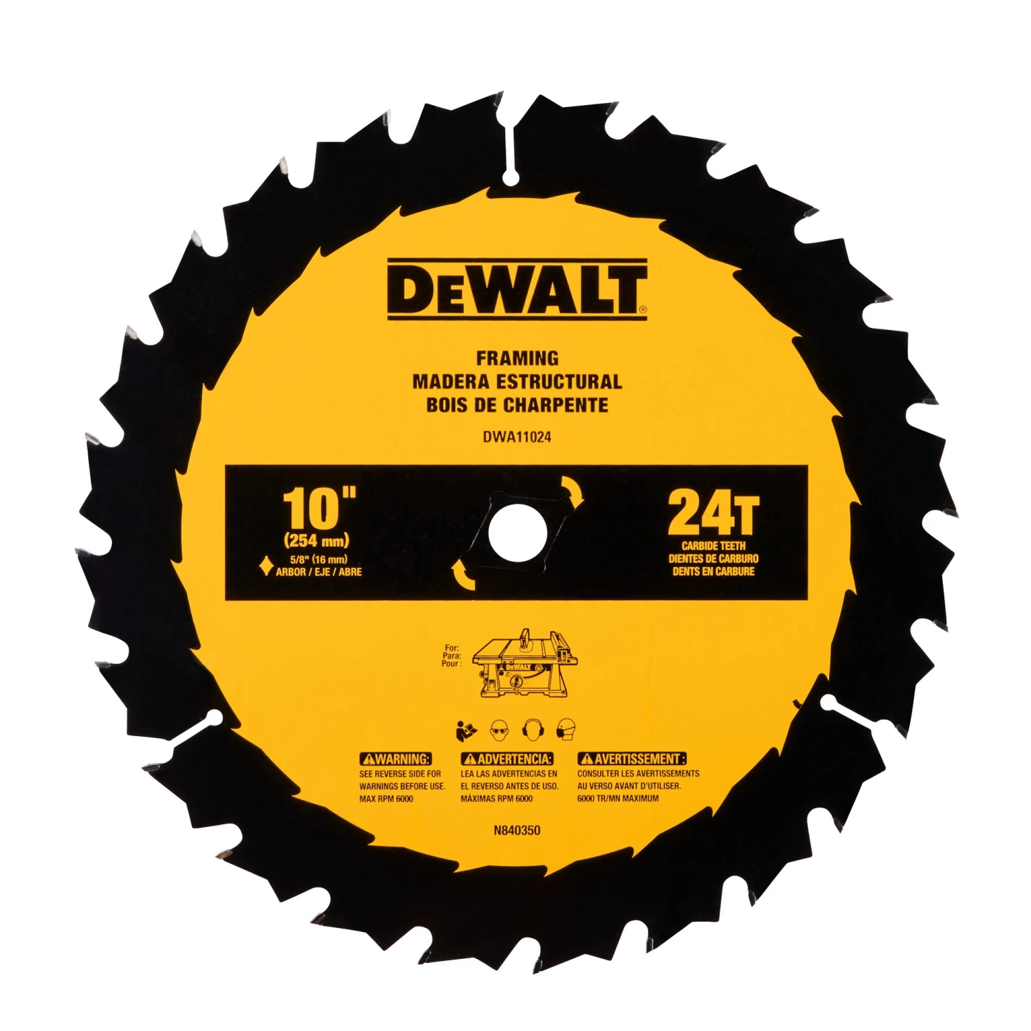 DEWALT Large Diameter Saw Blades 10-in 24 -Tooth Rough Finish Tungsten Carbide-tipped Steel Table Saw Blade Individual
