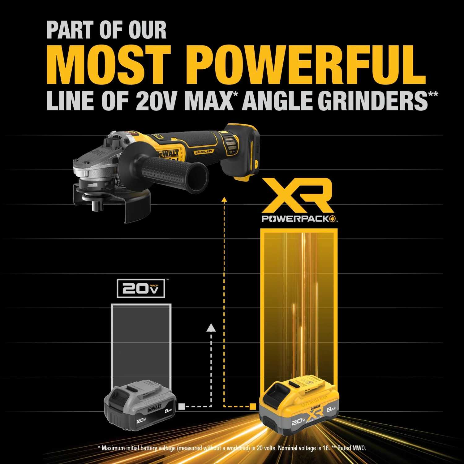 Part of our most powerful line of 20V MAX* angle grinders**