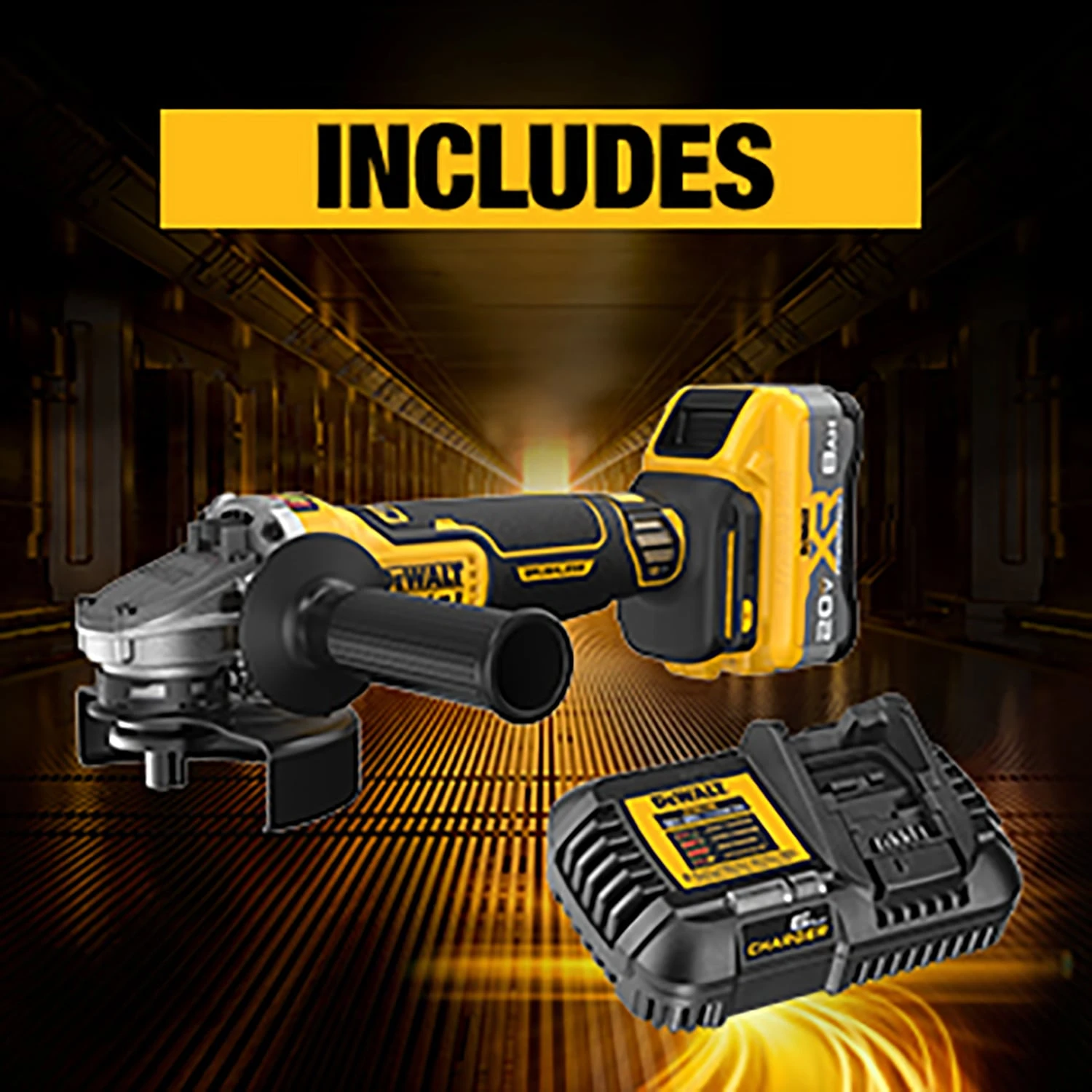 | Package Contents | DCG410 XR Angle Grinder, DCB2108 XR POWERPACK 8 Ah Battery, 5-in (125 mm) Type 27 Guard, Fast Charger, Side Handle, Wrench, Inner and Outer Flange |