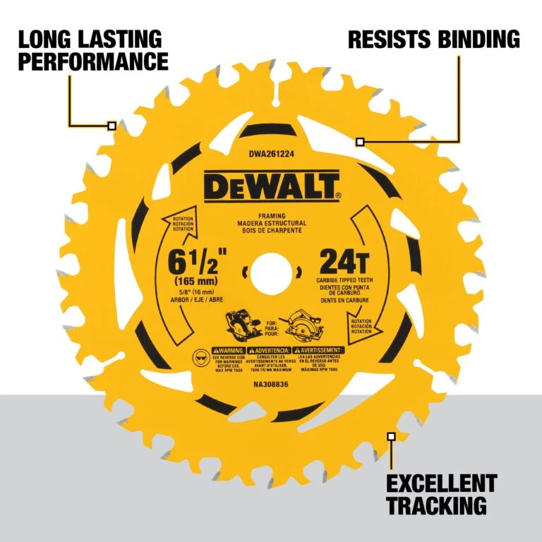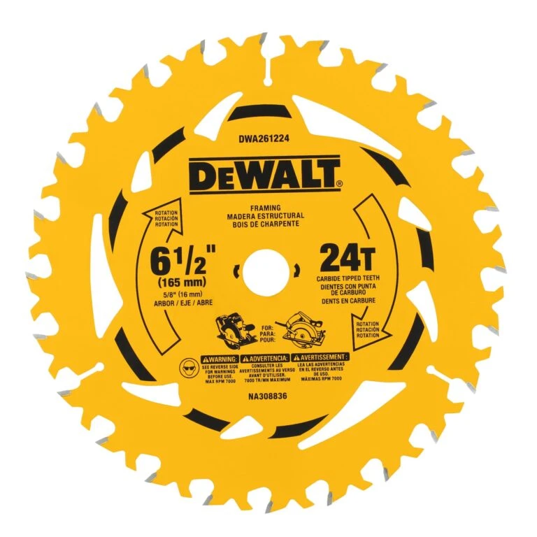 DEWALT 6-1/2-in 24 -Tooth Rough Finish Tungsten Carbide-tipped Steel Circular Saw Blade Individual